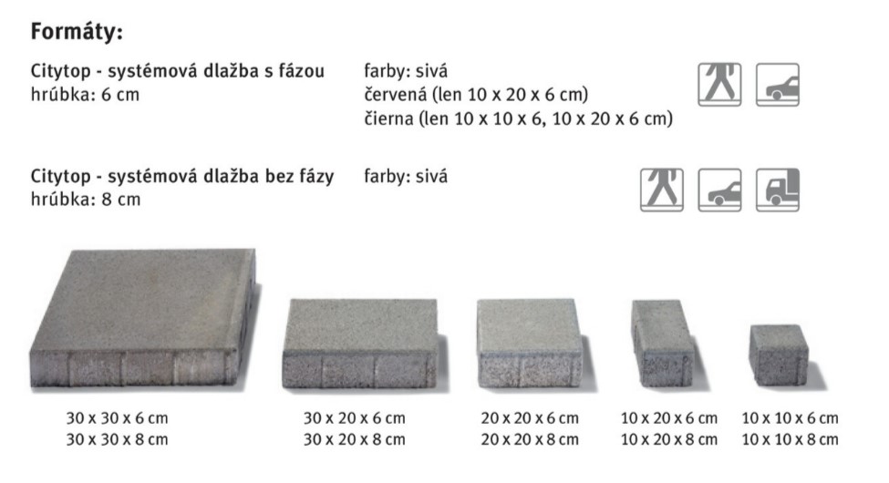 Technický list - Citytop - systémová dlažba s fázou a bez fázy